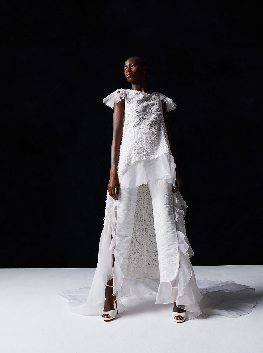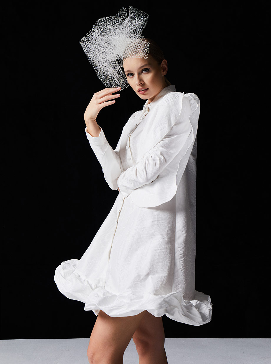Las prendas están pensadas para hacer resurgir la belleza de la naturaleza, una mezcla entre lo esencial, lo vivo y la sostenibilidad. Para ello, hemos utilizado innovadores volúmenes en las telas y tejidos veleidosos y etéreos que conforman una fantasía para aquel que lo contemple.