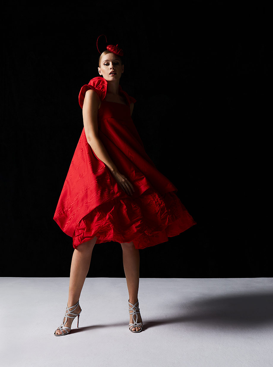 Patrones que se han confeccionado desde una rica paleta cromática: Blancos tiza, blancos azúcar, beige, dorados metálicos, negros noche y en un icónico rojo Valentino. Prendas y tejidos hermosos con las que volver a conectar nuestros sentidos, con la belleza de la luz, el color y el movimiento; Lo que ya es una seña De la Cierva y Nicolás desde tiempo atrás.