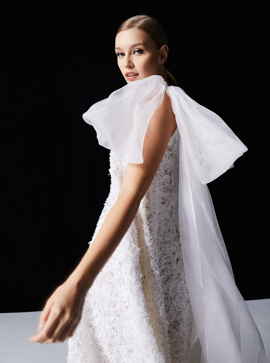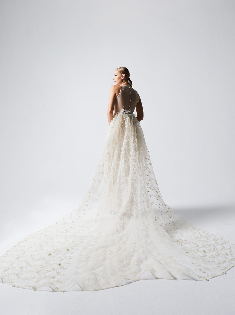 Se trata de una colección de vestidos de novia princesa, que emana una sensualidad desbordante proyectada a través de organzas transparentes, de primorosos moarés y sedas con filamentos de hilos de algodón, rasos enriquecidos de gráciles libélulas, suntuoso y Jacquard y de tafetanes tecnológicos.